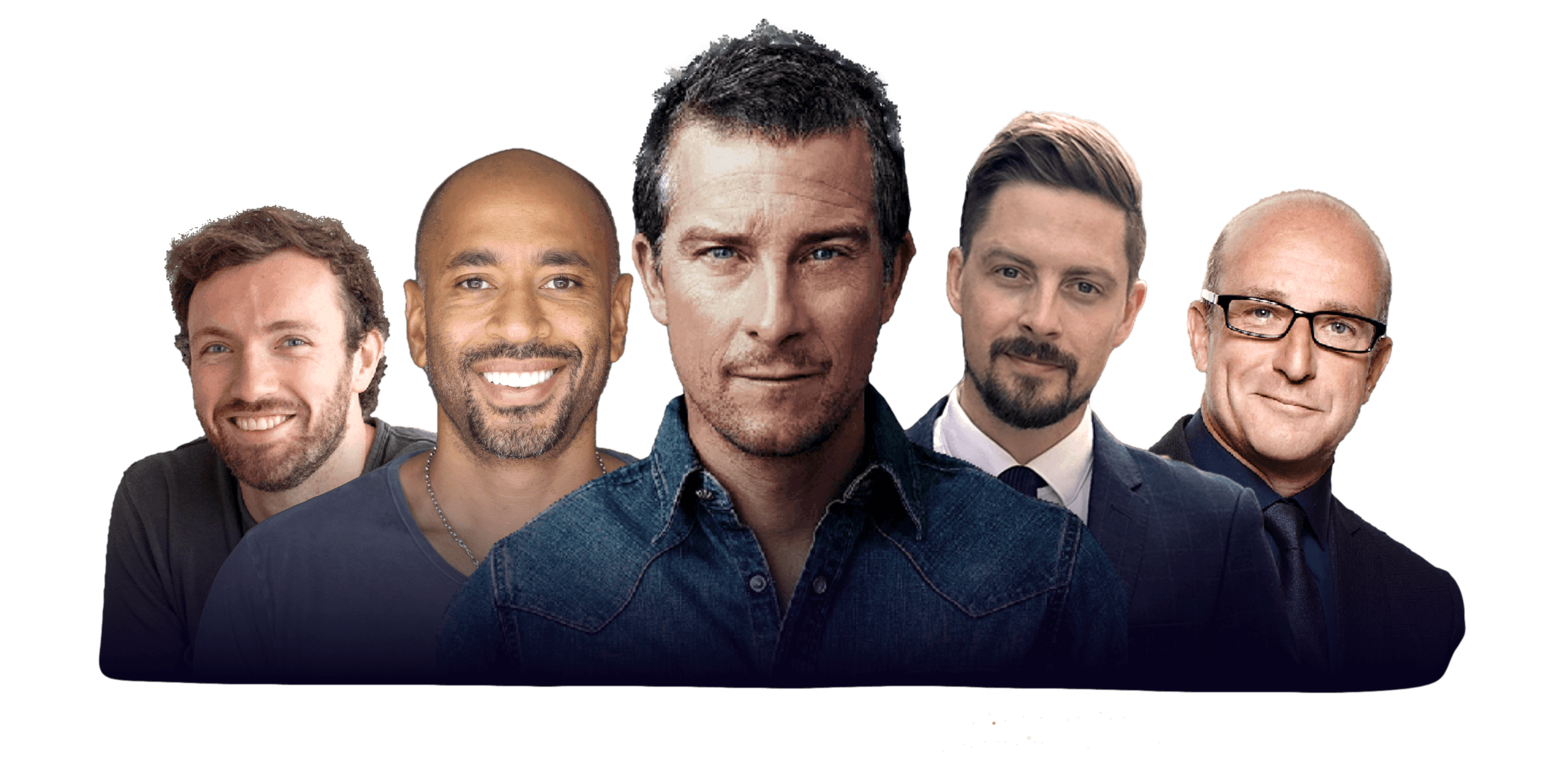 • Bear Grylls — Takes world presidents into the wild, trains Fortune 500 CEOs • Paul McKenna — World's leading hypnotist, coaches Special Forces & Fortune 500 execs • Chibs Okereke — Stress & Burnout coach to LinkedIn, PayPal, Nike executive teams • Jamie Clements — Breathwork coach to FTSE 100 CEOs and Premier League athletes • Andy Caine — Performance coach to Microsoft, Nike, Levi's, elite sports teams